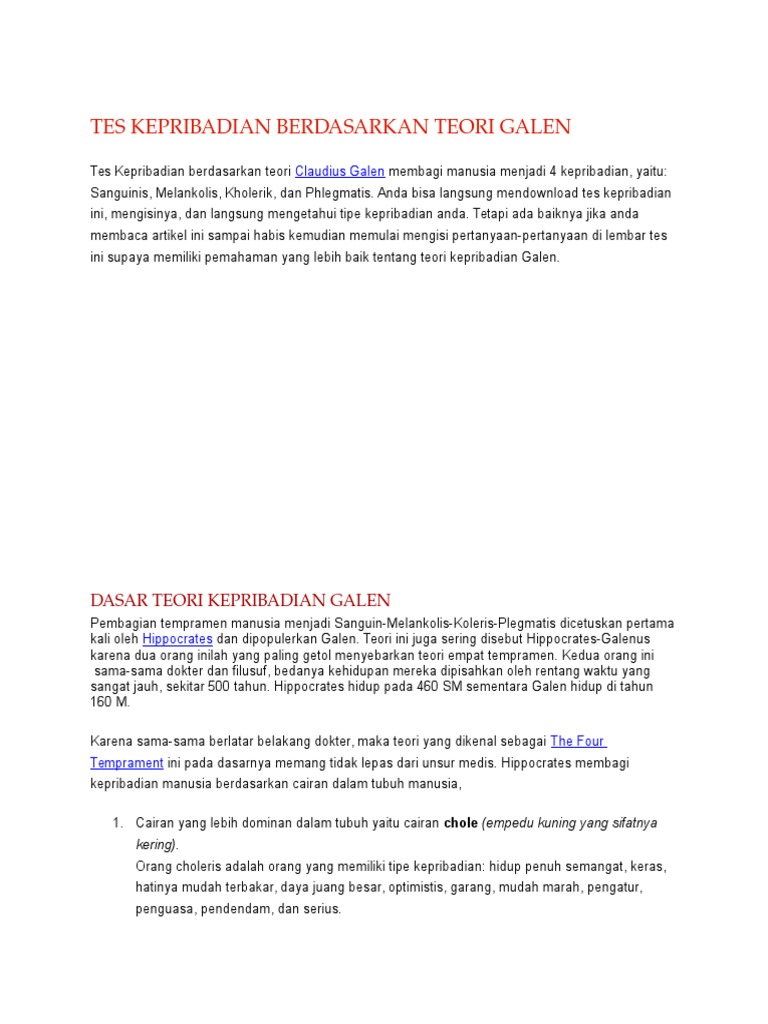 Tipe Kepribadian Manusia Sanguinis Plegmatis Koleris