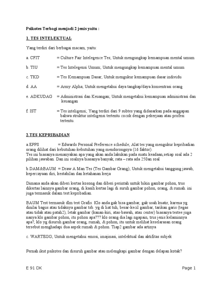 Tes Psikologi Dan Tes Kepribadian
